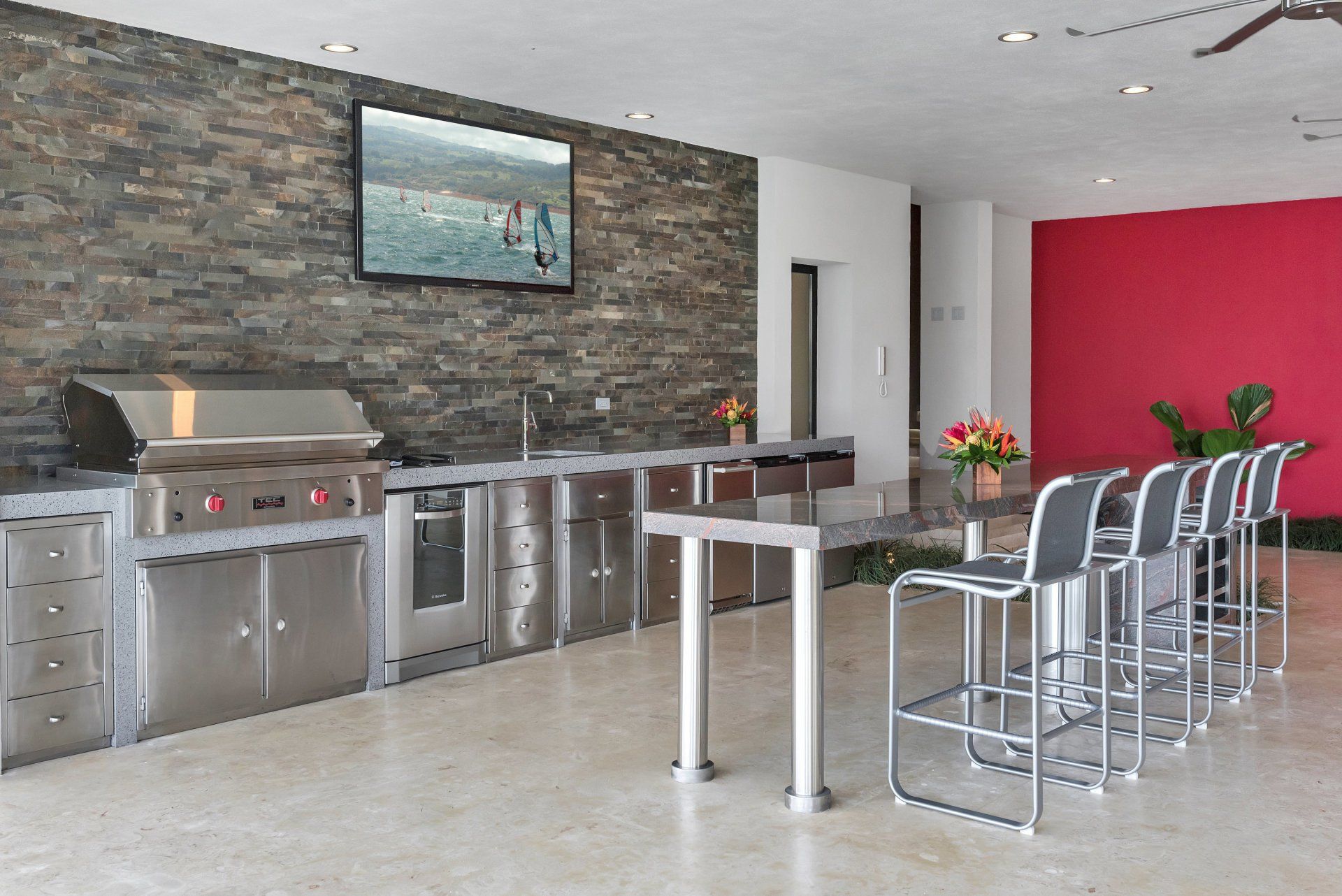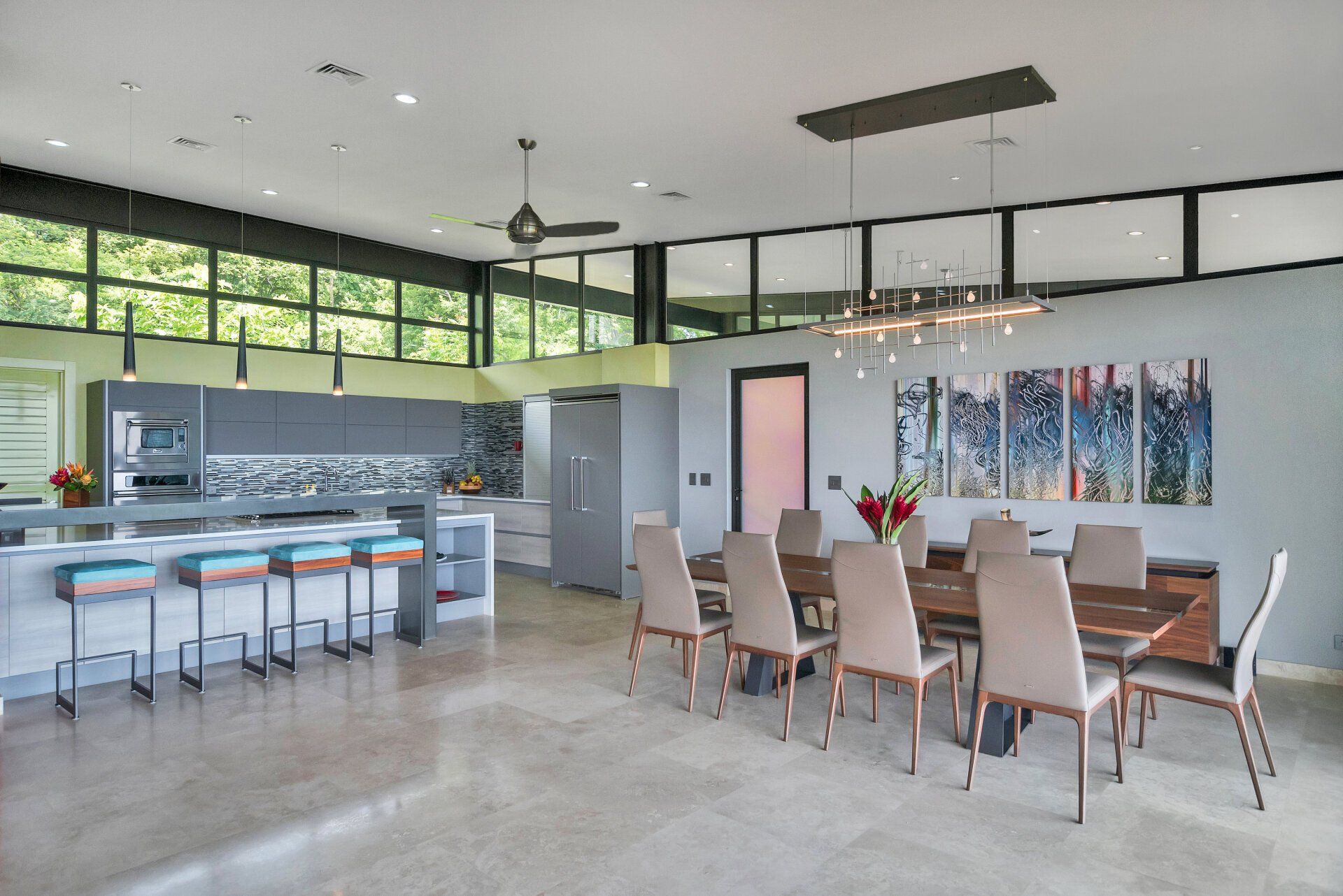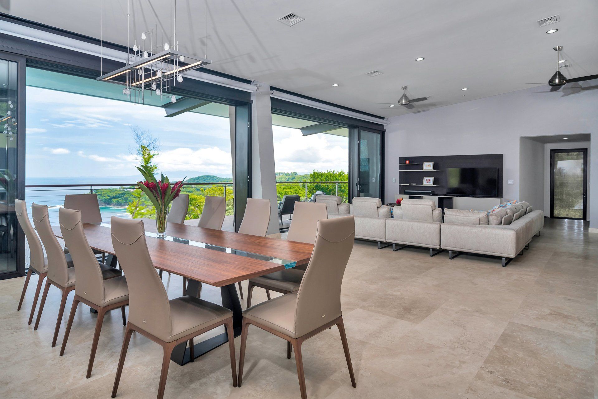 Dining at Villa Esperanza is a wonderful experience. The kitchen offers high-end amenities including top-of-the-line appliances, a large walk-in pantry and all the necessary cooking equipment and essentials for preparing any style of meal — from casual cooking to gourmet creations. On the upper level, a casual dining bar is adjacent to the kitchen. A beautiful dining area with seating for eight and ambient lighting allows for special dinners as well as cozy family dining. On the lower level next to the pool, a long granite bar offers plenty of space for gathering around the TV for enjoying your favorite sports teams. This outside kitchen area includes two small refrigerators and an ice machine, as well as a state-of-the-art grill. Nearby are three tables to be used separately or together for large-group dining or table games. Should you decide to sleep in, our staff will prepare a fabulous breakfast for you, allowing you to dine in any area of the home with gorgeous views of the Pacific Ocean. Offsite dining abounds, as well.